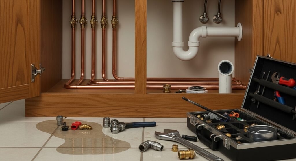 Complete sink plumbing, P-trap installation, and water line upgrades.